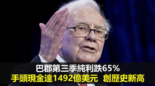 「股神」旗下巴郡第三季純利跌65% 手頭現金達1492億美元 創歷史新高